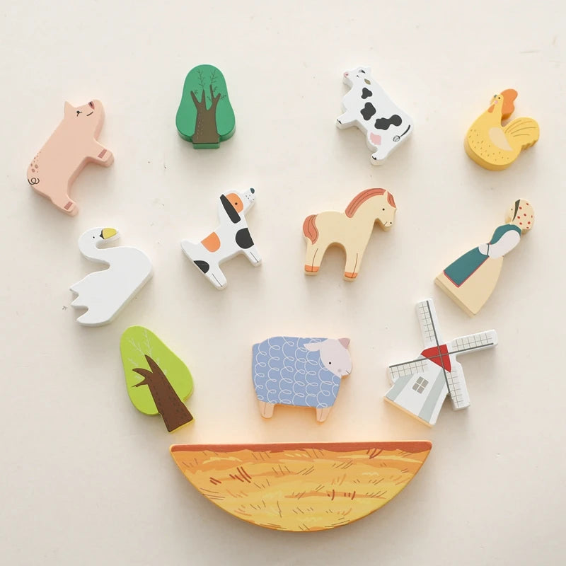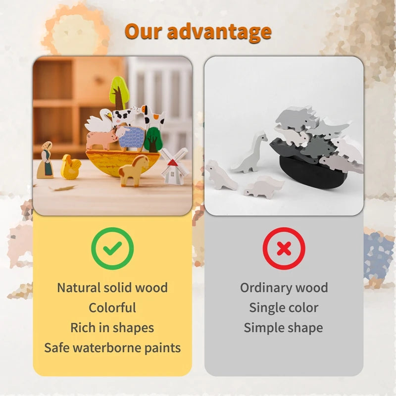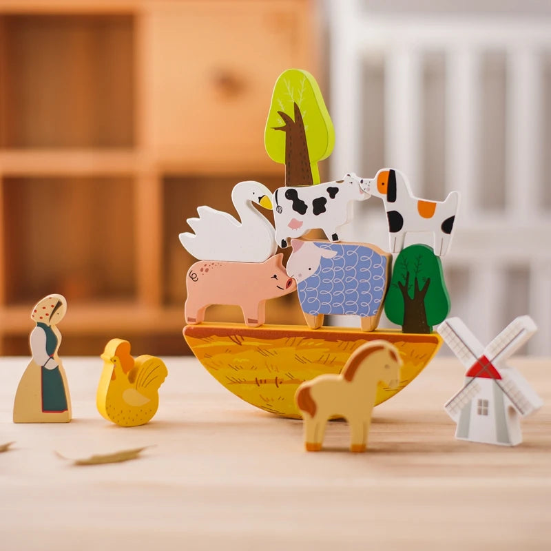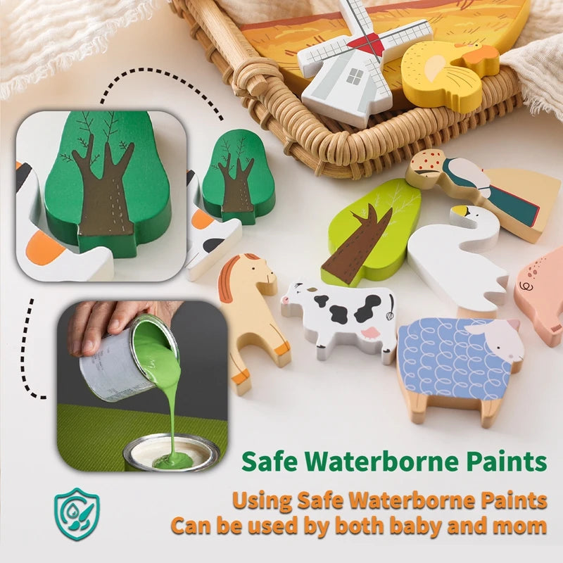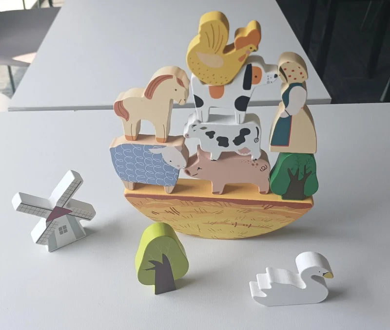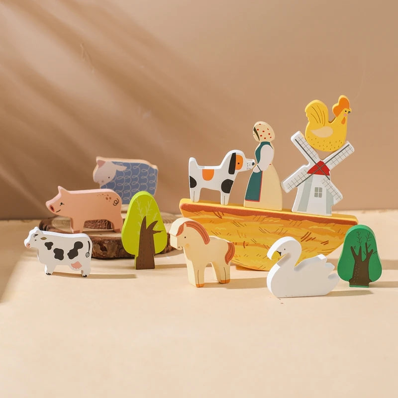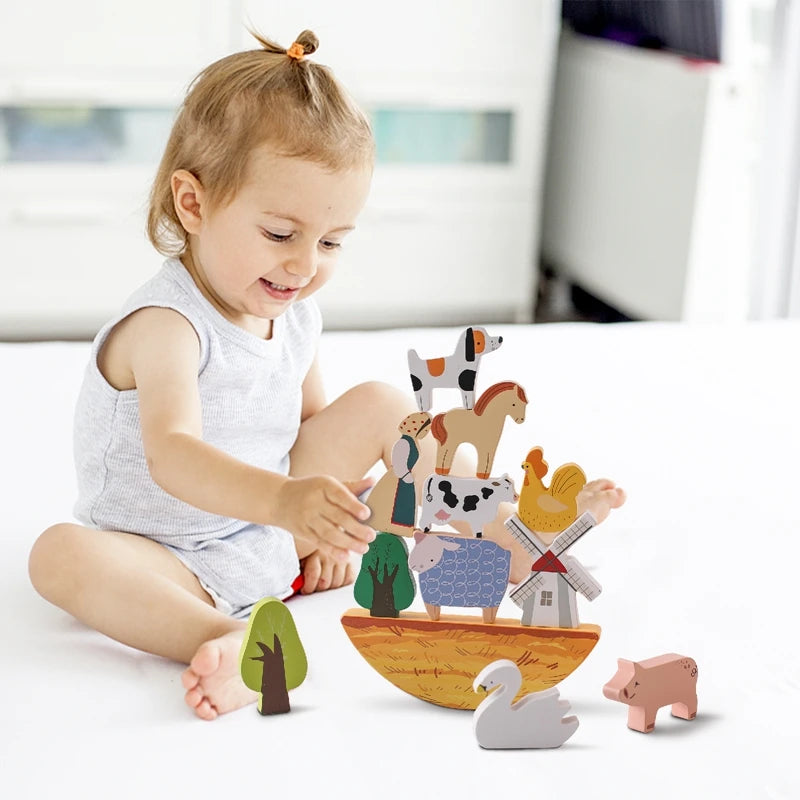 Baby Wooden Stacking Toys Building Blocks Balance Game Farm Colored Blocks Educational Puzzle Toys Montessori Toys For Kids Gift